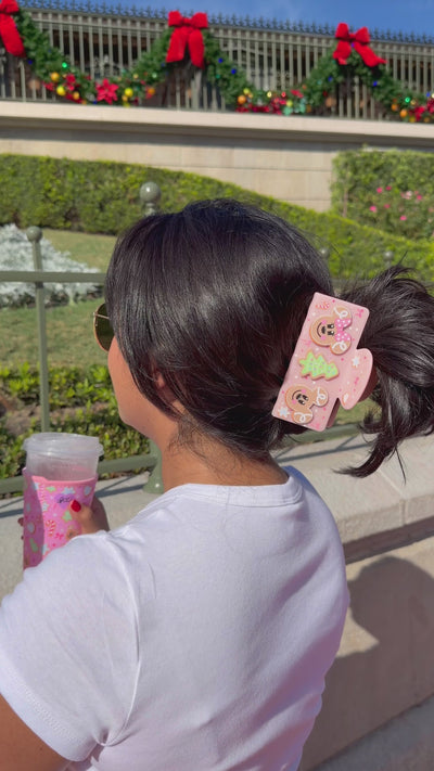 Each clip is crafted from durable eco friendly cellulose acetate and sprinkled with festive gingerbread cookies, candy canes, bows, and pastel stars. Designed to hold hair securely without pulling, these clips stay in place for an all day hold. Available in two sizes, our 4.25 inches and 5 inches for thicker or longer hair. Choose your favorite size or collect both for the cutest festive styling.