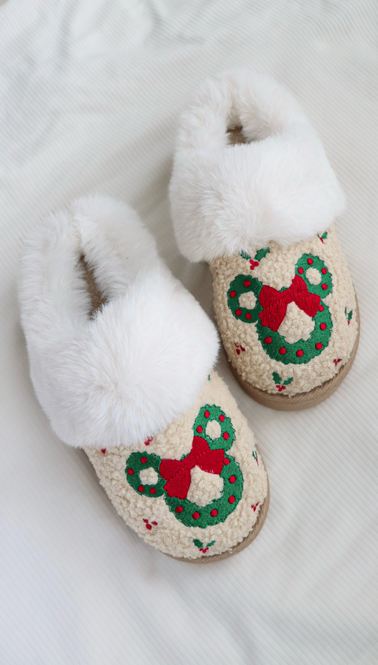 Slip into comfort with our Merry and Magical scuff slippers. Crafted from plush sherpa and adorned with a luxe faux fur cuff, these slippers offer unparalleled coziness. Our non-slip soles are textured and water-resistant, so you can take them from indoor lounging to outdoor adventures with ease. Available in women’s sizes 6 - 10.